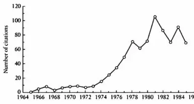 ছবি ১, হ্যামিলটনের ১৯৬৪ সালে প্রবন্ধটি বছর প্রতি সাইটেশন, সায়েন্স সাইটেশন ইনডেক্স মোতাবেক।