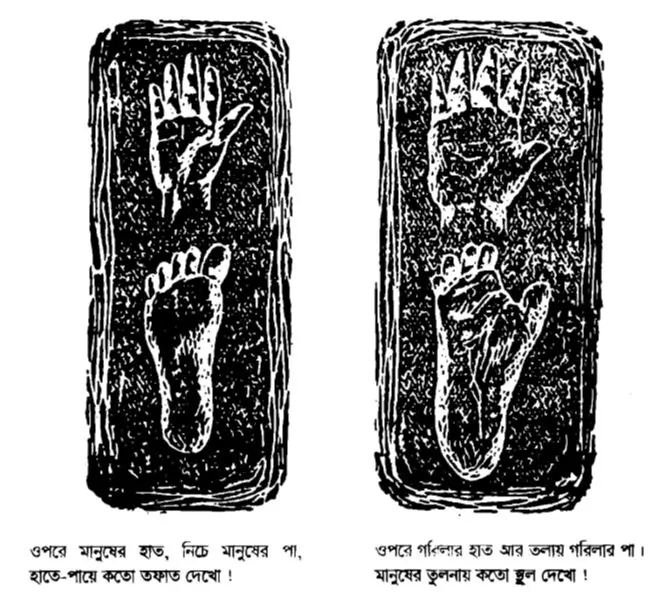 মনে রাখতে হবে, এই সব বনমানুষদের আড্ডা ছিল গাছের ওপর। তাদের গায়ে লোম, মুখে লোম আর তাদের ছিল চারটে করে পা।